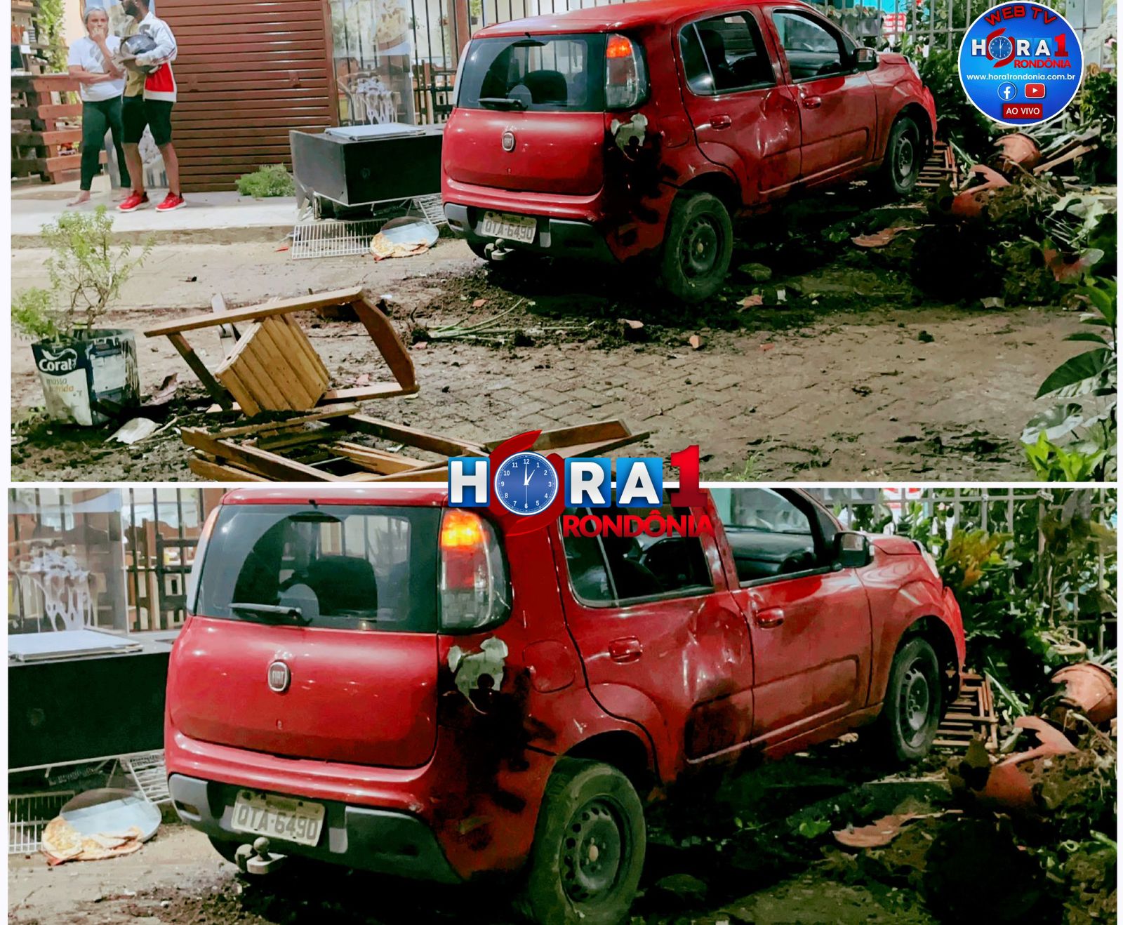 Motorista perde controle de carro e invade pizzaria, deixando mulher ferida na zona Leste de Porto Velho