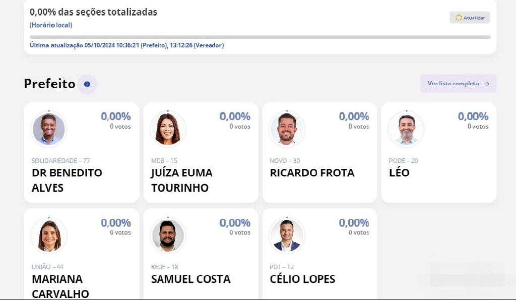 ELEIÇÕES 2024: Resultado da votação no primeiro turno em Porto Velho em tempo real
