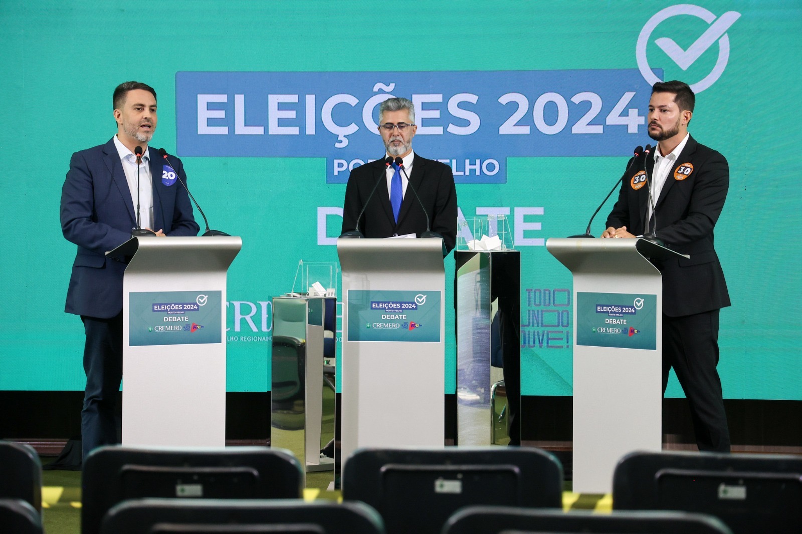 Debate do Cremero foi prejudicado em parte pelas ausências de Célio Lopes (PDT) e Mariana Carvalho (União Brasil); a candidata da situação alegou compromissos d...